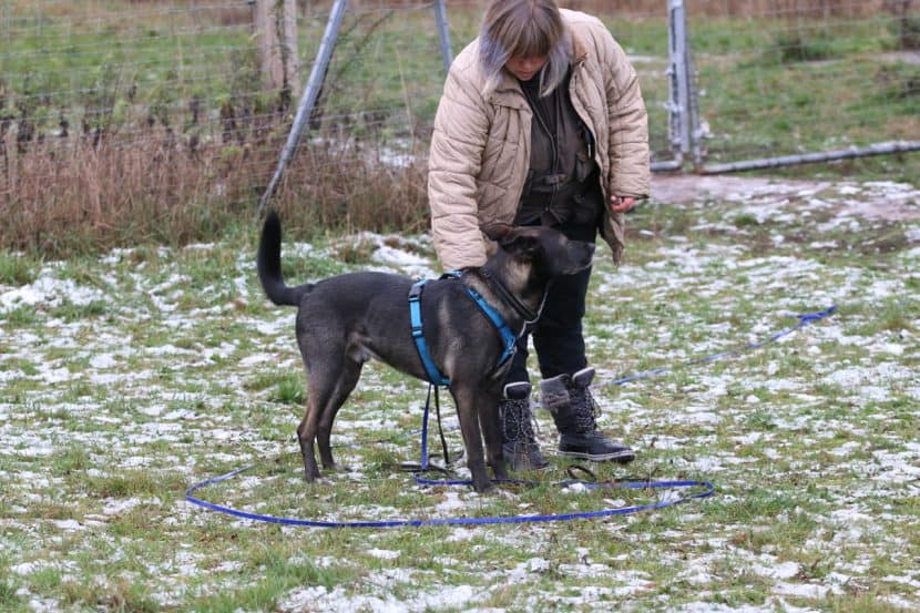 Der Geschirrgriff wurde von Dr. Ute Blaschke-Berthold von CumCane® entwickelt. Dieses Signal wird über Bewegungseinschränkung aufgebaut und der Hund lernt kleinschrittig das Stoppen auf ein bestimmtes Signal. Es erzeugt also weder Angst noch Frustration beim Hund. Nach dem Aufbau solltest du den Geschirrgriff immer wieder auffrischen. Du kannst ihn dann in schwierigen Situationen anwenden um deinen Hund in der Vorwärtsbewegung zu stoppen. Vergiss das Alternativverhalten danach bitte nicht, denn das ist eine wichtige Information für deinen Hund.
